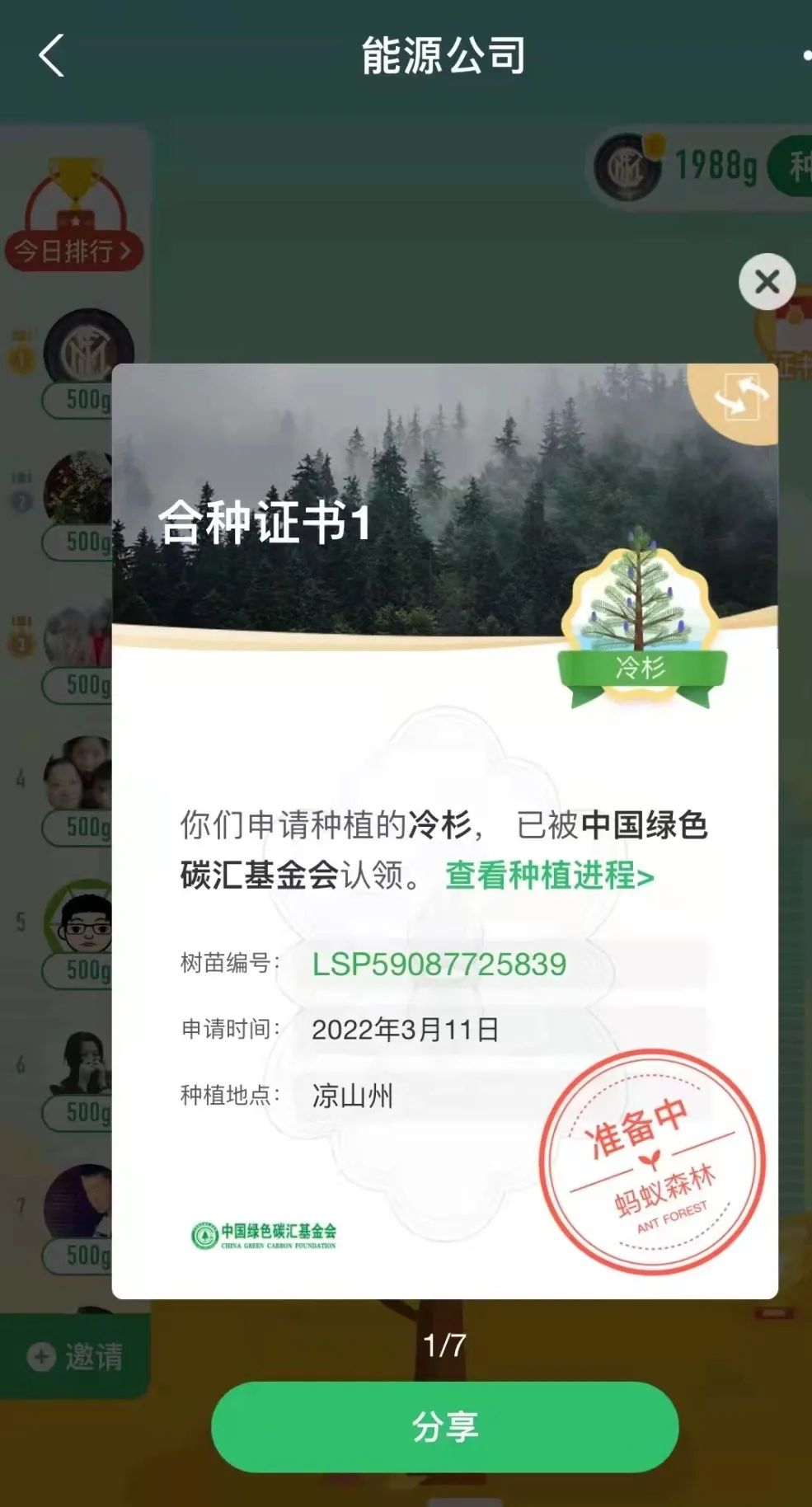 “一花一草皆生命,一枝一葉總關情?!痹缭?019年起,公司就通過支付寶螞蟻森林組建了一只“能源公司云種樹小隊”,如今隊伍人數(shù)越來越壯大,已有59位隊員,截止目前,在酒泉、大理、邯鄲等地,種下了冷杉、側(cè)柏、云杉、胡楊等7棵大樹。3月11日,在小伙伴的共同努力下,我們又種下了一棵冷杉樹,該樹被中國綠色碳匯基金會認領,將種植到?jīng)錾街莸貐^(qū)。